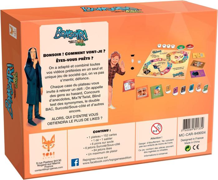 Les youtubeurs McFly et Carlito ont adapté et combiné toutes leurs vidéos préférées en un seul et unique jeu de société qui, on va pas s’mentir, défonce. Chaque case du plateau vous invite à relever un défi :