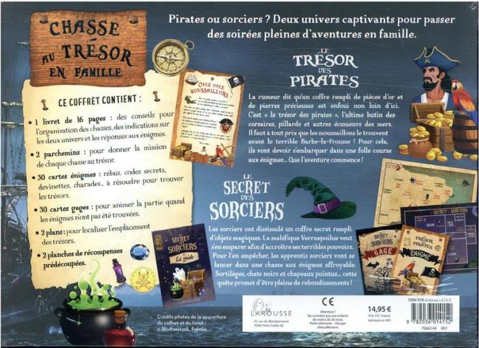 – Deux scénarios : l’un se déroulant dans l’univers des pirates – Le trésor des pirates – et l’autre dans l’univers des magiciens – le secret des sorciers.