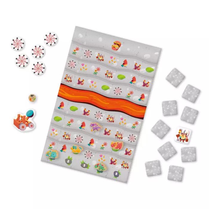 Mais attention, le parcours est semé d’embûches… Vos adversaires peuvent créer une coulée de lave pour vous empêcher d’avancer, ou le dé peut tomber sur le tremblement de terre et chambouler tout.