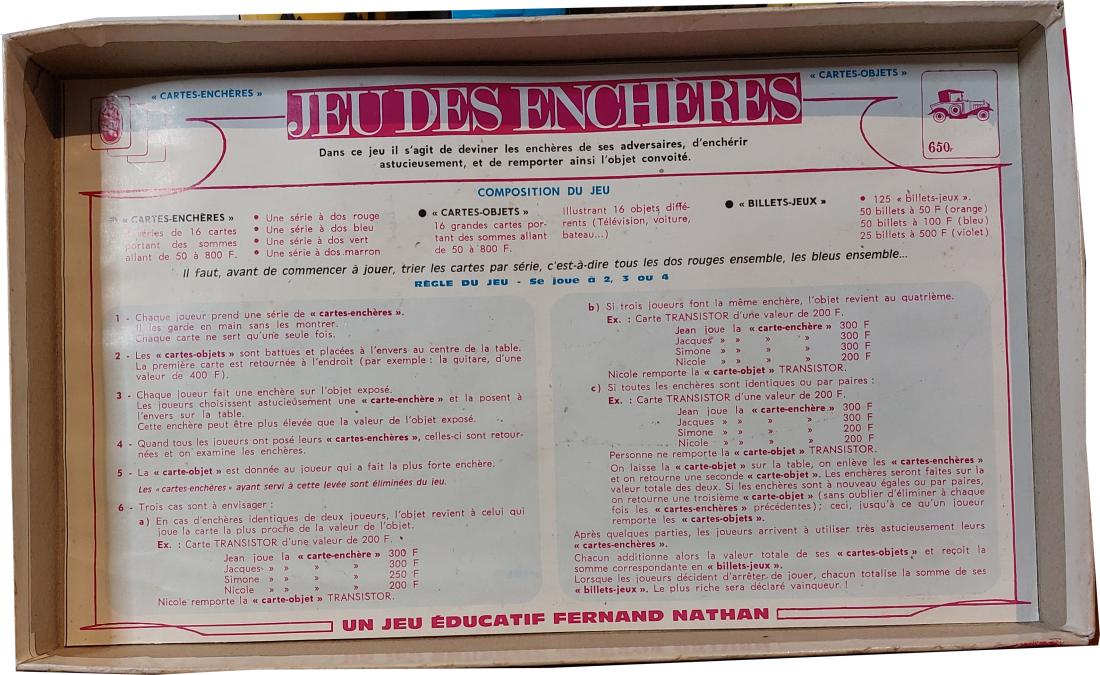 Dans ce jeu il s’agit de deviner les enchères de ses adversaires, d’enchérir astucieusement, et de remporter ainsi l’objet convoité.