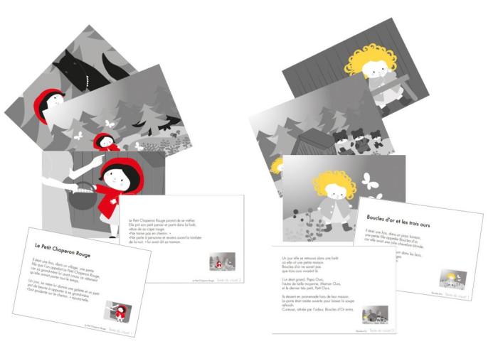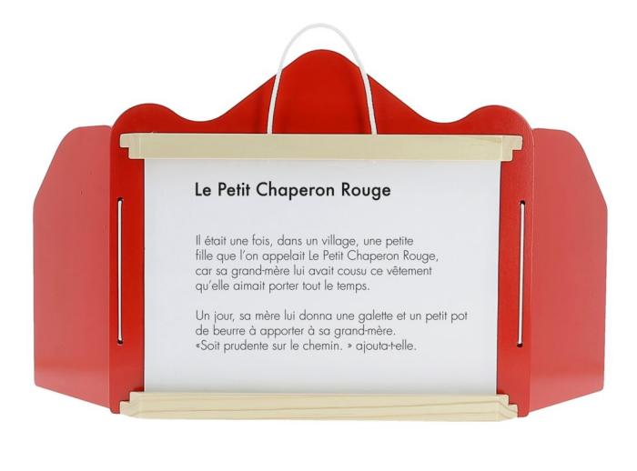Composé d’un panneau central et de deux volets en bois, le butaï kamishibai permet de conter des histoires de façon animée et poétique. Le conteur se place derrière le théâtre miniature et fait défiler les planches illustrées (ou kamishibai) de l’histoire de Boucle d’Or et les trois ours ou du Petit Chaperon Rouge l’une après l’autre et lit le texte qui se trouve au dos. Les conteurs en herbe peuvent même libérer leur imagination en dessinant leur propre histoire sur les feuilles vierges. L’enfant, lorsqu’il se sent prêt à raconter l’histoire, mène ainsi un projet du début à la fin et est amené à exprimer des émotions très variées. Une autre façon de faire aimer la lecture aux enfants !