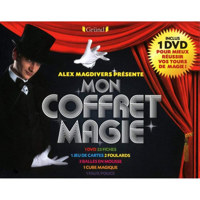 A découvrir pour les apprentis magiciens : 25 fiches illustrées faciles à manipuler lors de l’exécution des tours, un jeu de cartes spécial magie, 2 foulards, un faux pouce, trois balles en mousse, un carré magique en mousse et, pour la première fois dans un coffret de magie un DVD dans lequel Alexandre partage ses tours préférés et ses astuces de pro.