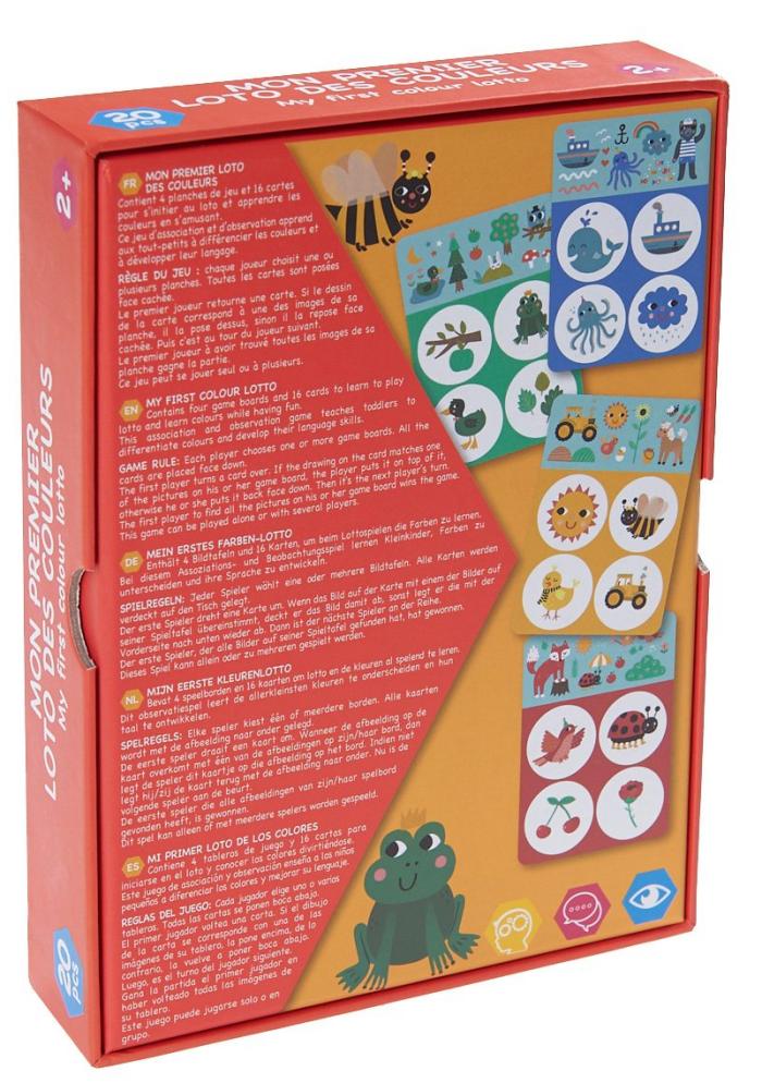 Contient 4 planches de jeu et 16 cartes pour s’initier au loto et apprendre les couleurs en s’amusant.