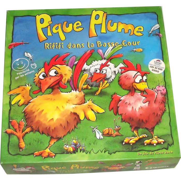 Case après case, 4 poules en bois cherchent leur chemin en retournant, au centre du parcours, la carte cachée correspondant à la case qui se trouve devant elles. C’est une course folle, car chacune essaye de rattraper les volatiles adverses pour les déplumer !